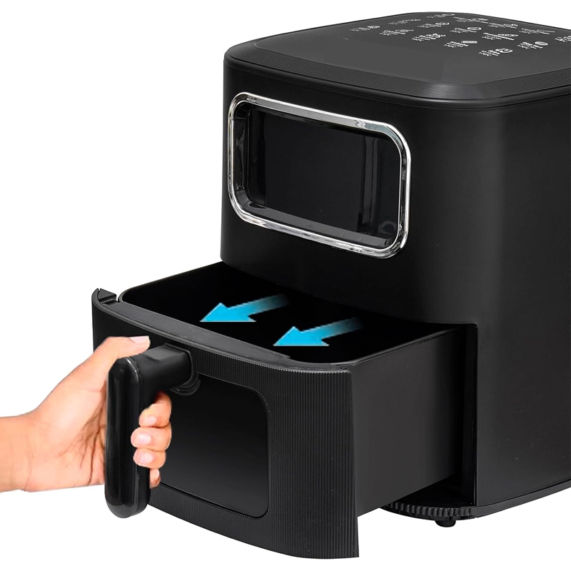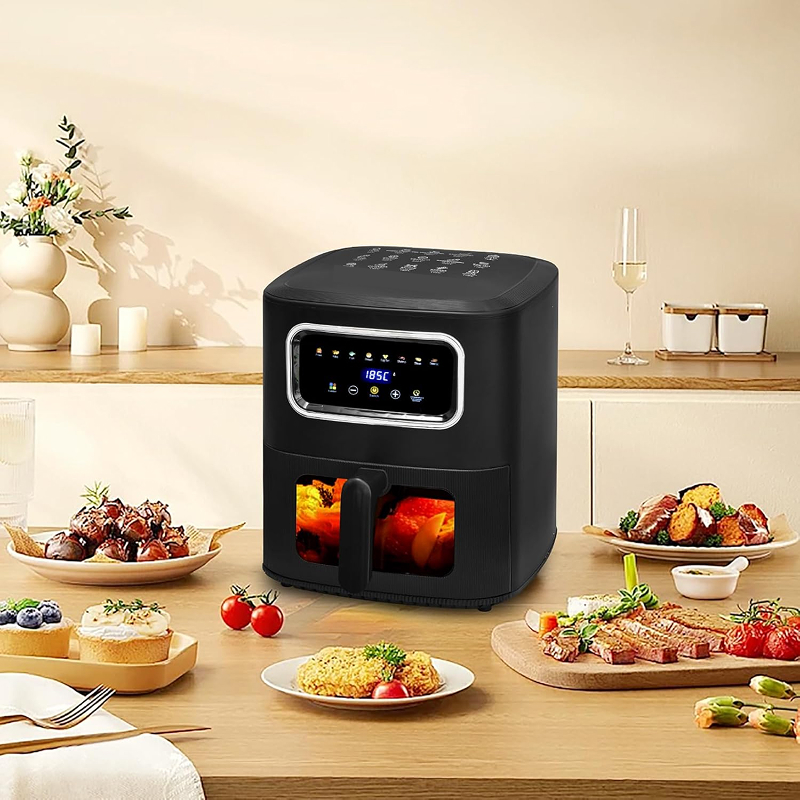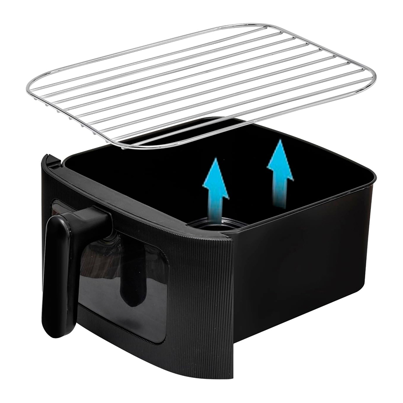 Visible Cooking Window: Watch your food as it cooks without opening the basket, keeping heat locked in.