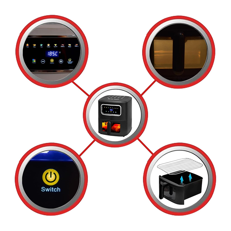 Equipped with a modern touch screen display, visible cooking window, and 360° hot air circulation, this air fryer combines convenience, style, and performance for your everyday cooking needs.