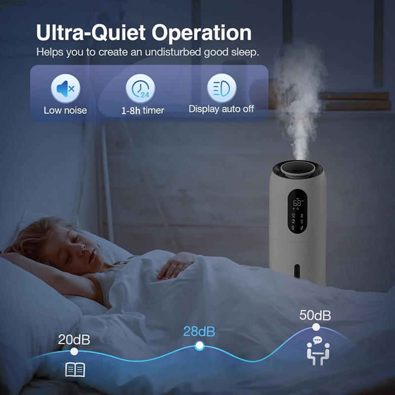Large-Capacity Floor-Standing (Pregnancy & Baby-Friendly) 10liters water tank. Whisper-Quiet Air Humidifiers: The silent humidifier has a noise level of <30db. It operates very quietly. This baby humidifiers are ideal for use in the bedroom, baby nursery, parlor, office, or other spaces where noise levels need to be kept low.