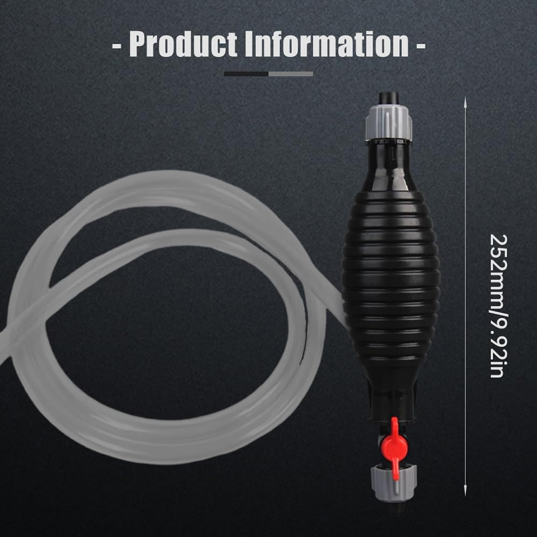 Manual liquid transfer siphon pump used for transferring fuel, oil, or water between containers. This multifunctional liquid sucker pump is ideal for transferring a variety of liquids, including gasoline, diesel, oil, and water, and is an essential tool for a variety of applications.