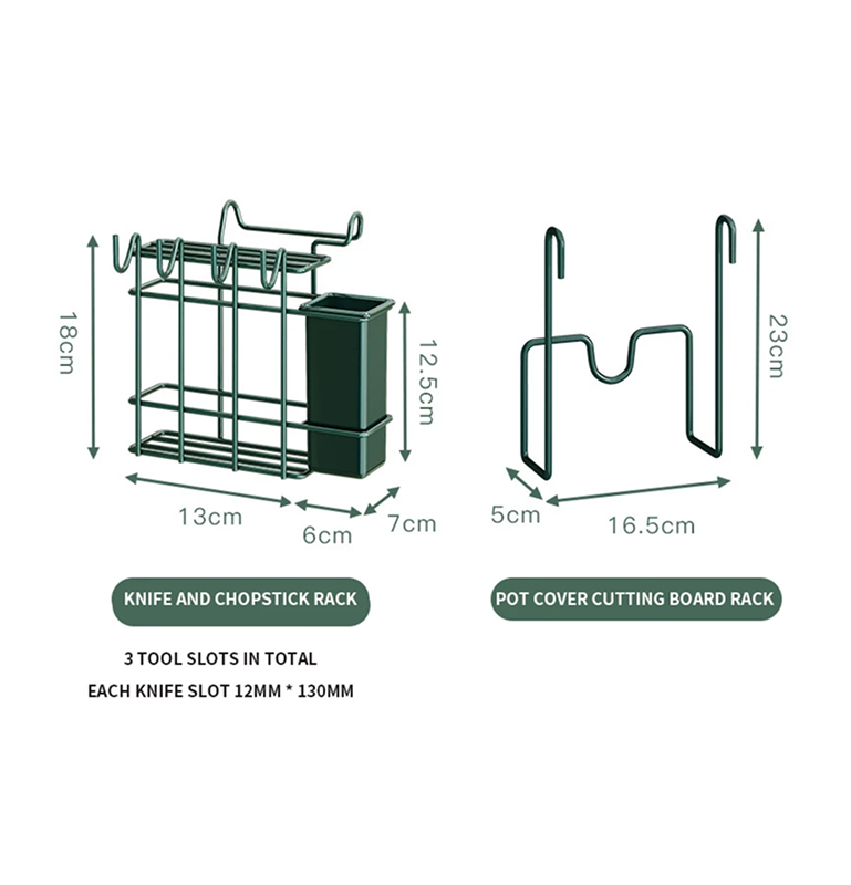 3 layered dish rack is 63.5cm tall with 20cm space in between contains different sections for different cookware e.g. chopping board, cook spoons, cups, bowls and plates.