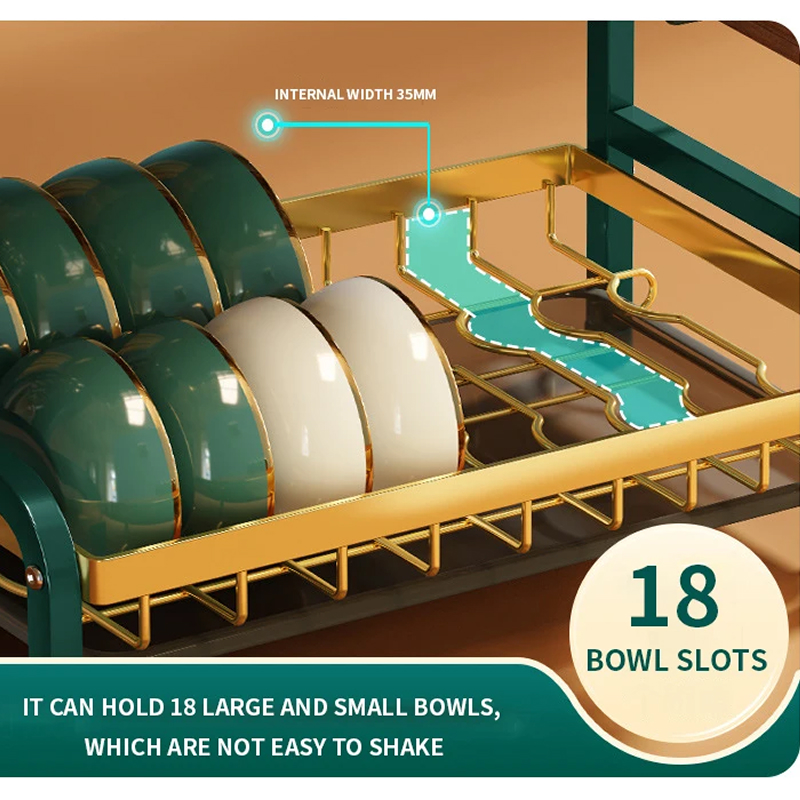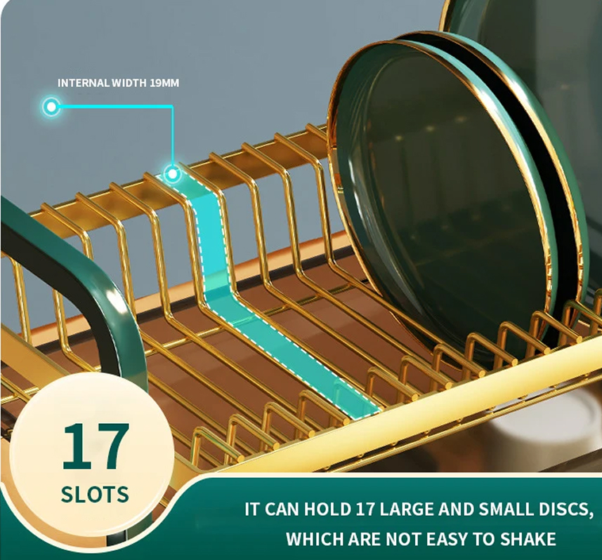 Kitchen Dish Drainer offer enough storage space. Vertical double layer design, can hold up to 17 plates and 18 bowls at the same time, also can store cups, adjust the number according to your needs, perfect for your kitchen and meet your basic storage needs for kitchen tools.