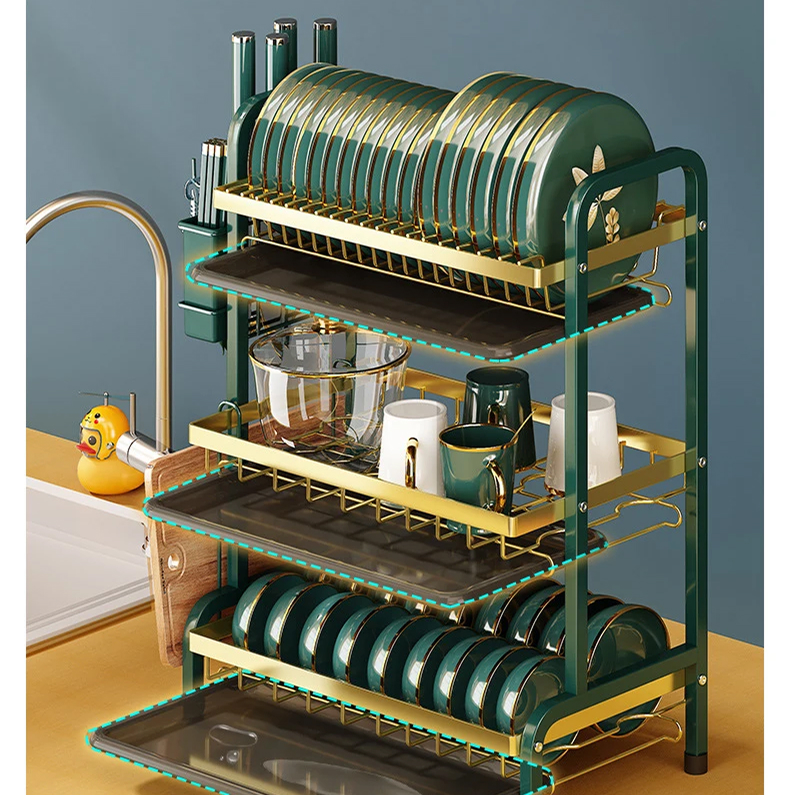 3 Layered Kitchen Dish Rack Green