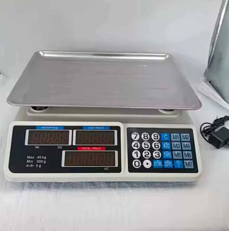 Portable scale that could be used to measure in kgs stocks, food, liquid and any other item.