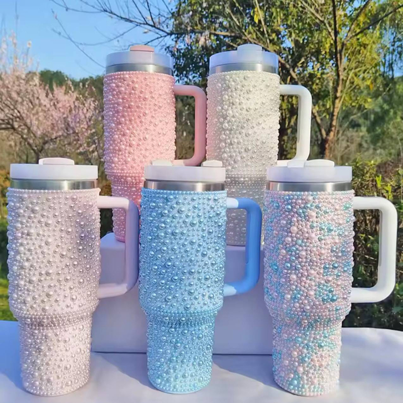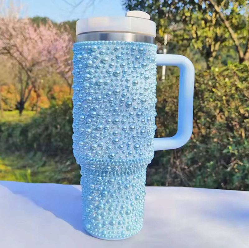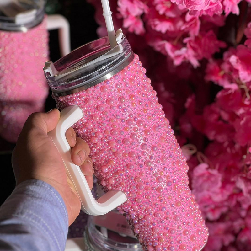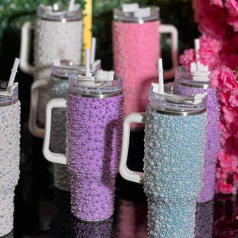 1pc x 40oz Insulated Pearls Tumbler with Straw