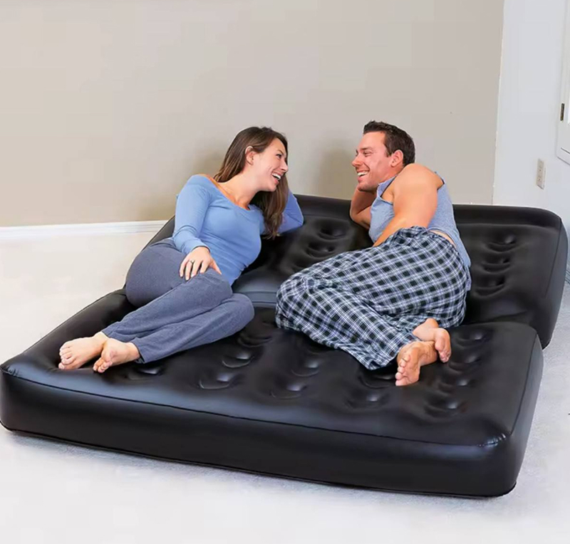 Thanks to the practical folding design, you can enjoy the air sofa in 5 different ways: double sofa, double air mattress, recliner, double bed or double bunk bed.