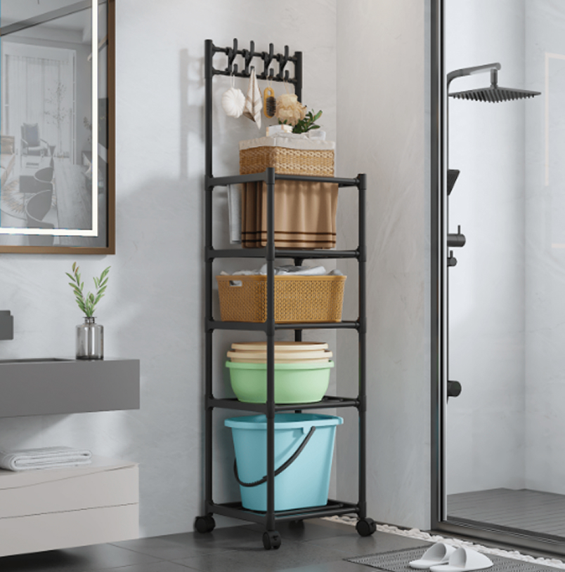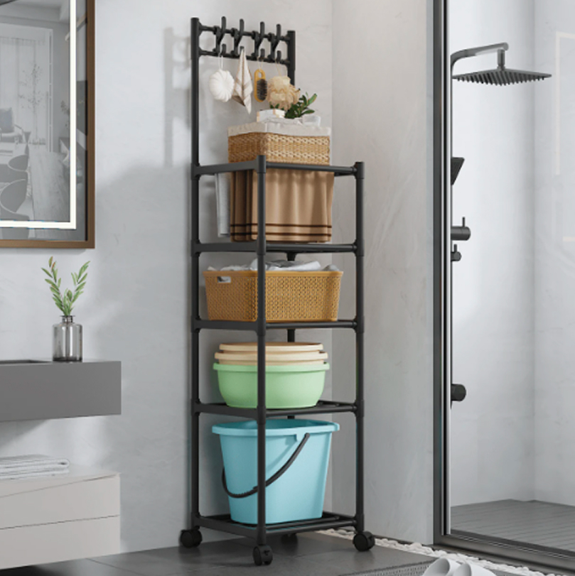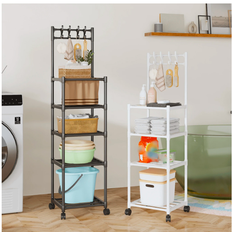 1pc x 5 Tier Storage Rack with Hooks & Swivel Wheels