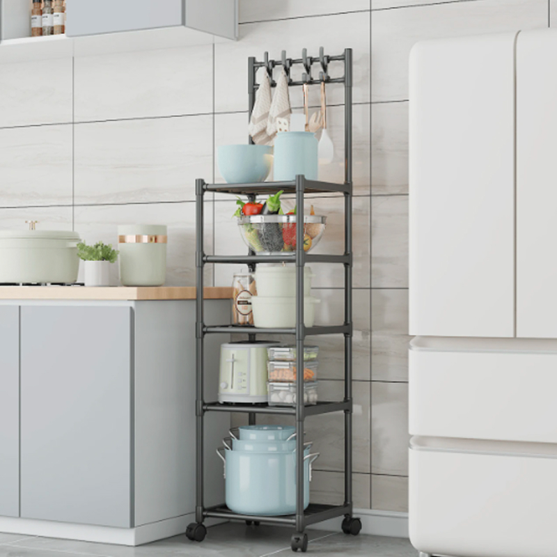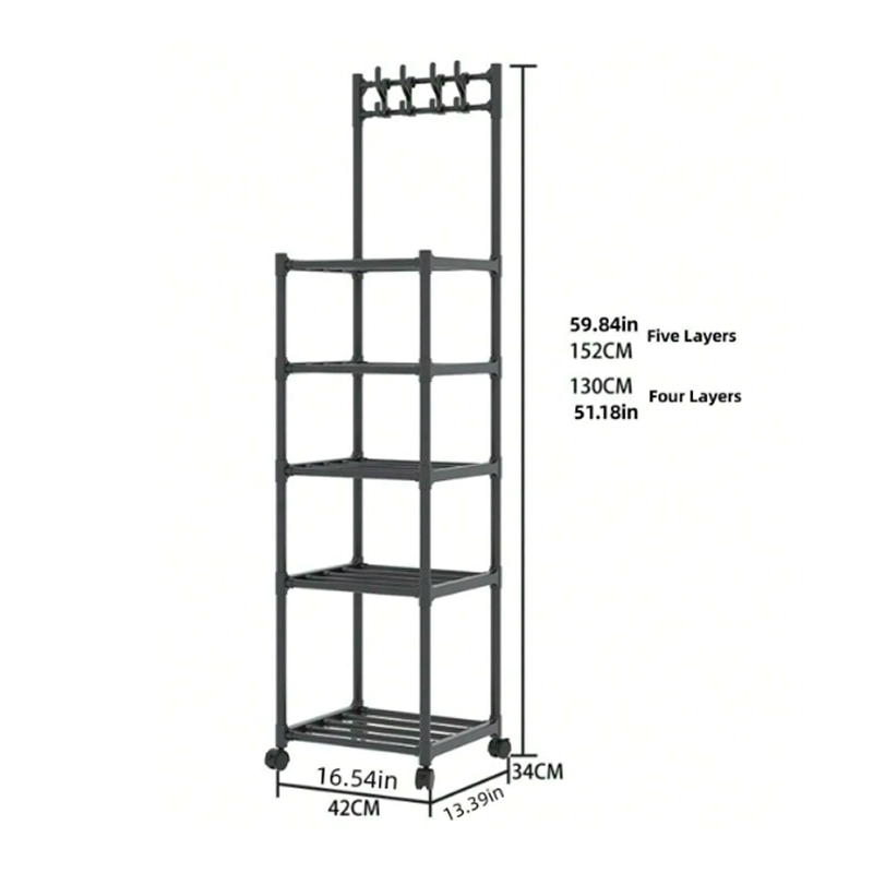 5 Tier Storage Rack with Hooks & Swivel Wheels