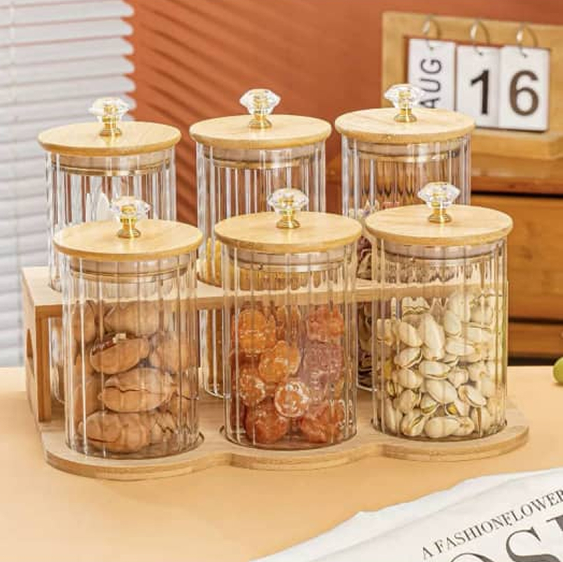7pcs Glass Storage Container with Wooden Lid