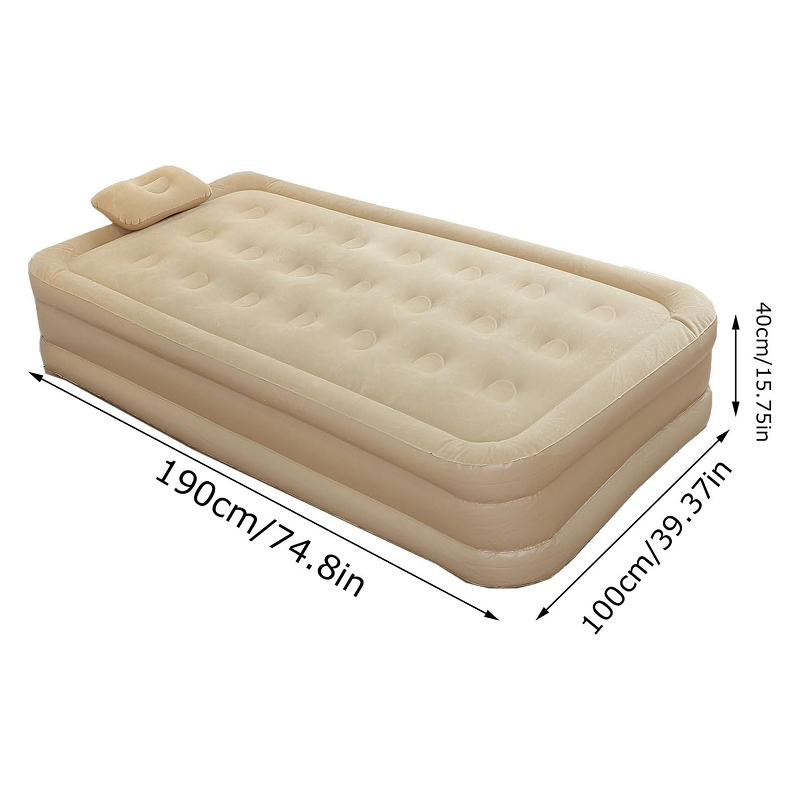 This Single-Size Premium Inflatable Air Mattress is designed for comfort, convenience, and durability. With a raised double-layer structure and a soft flocked top, it provides a stable and cozy sleeping surface ideal for guests, camping, travel, or temporary home use. It inflates quickly and offers strong support to ensure a restful night’s sleep.