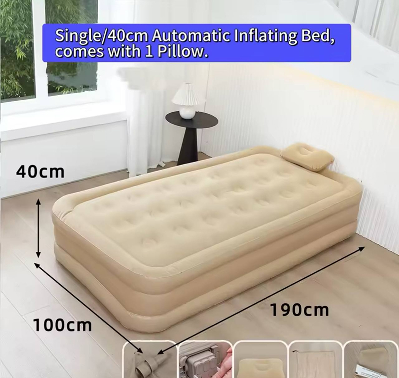 Automatic Self-Inflating Air Bed with Built-in Pump Home Furniture Inflatable Mattress Convenient for Outdoor Activities.