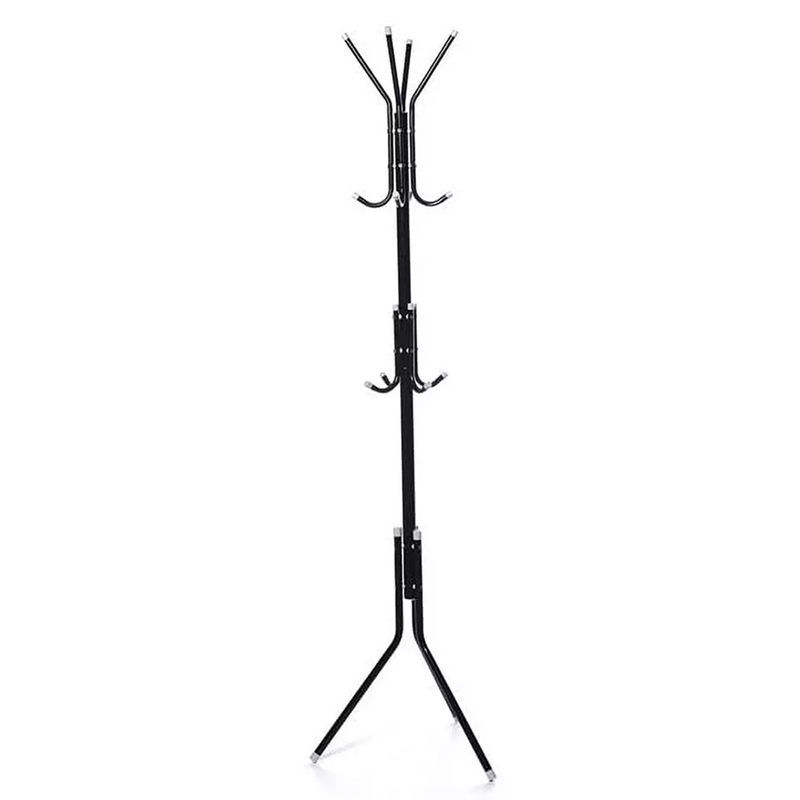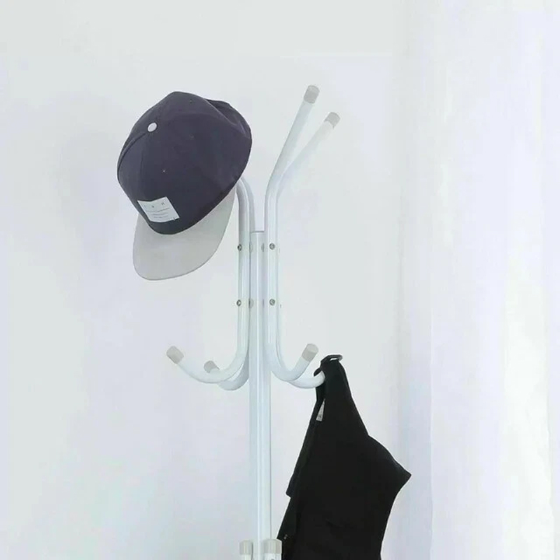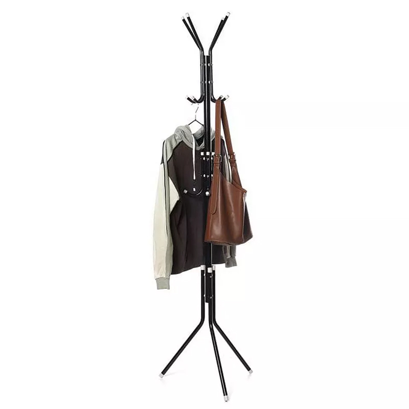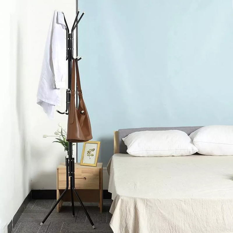 This floor-standing coat rack stand has a compact design and will look good in a hallway, bedroom