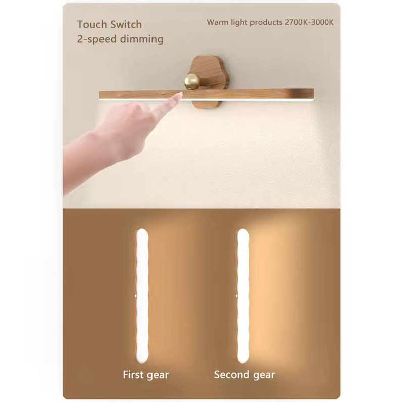 Simple and modern design made of wood, smooth surface, corrosion resistant and durable, 3W neutral white wall lighting, dimmable, touch control, 3 brightness levels adjustable to meet different lighting needs.