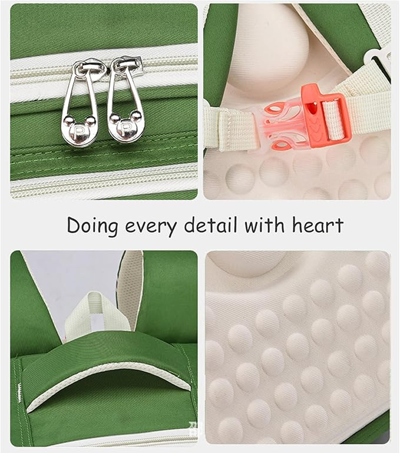 Cute Bunny Large Capacity Backpack has a thickened back for comfort and support, multi-functional front pocket design, back reflective strip design, improve the safety of children’s travel at night.