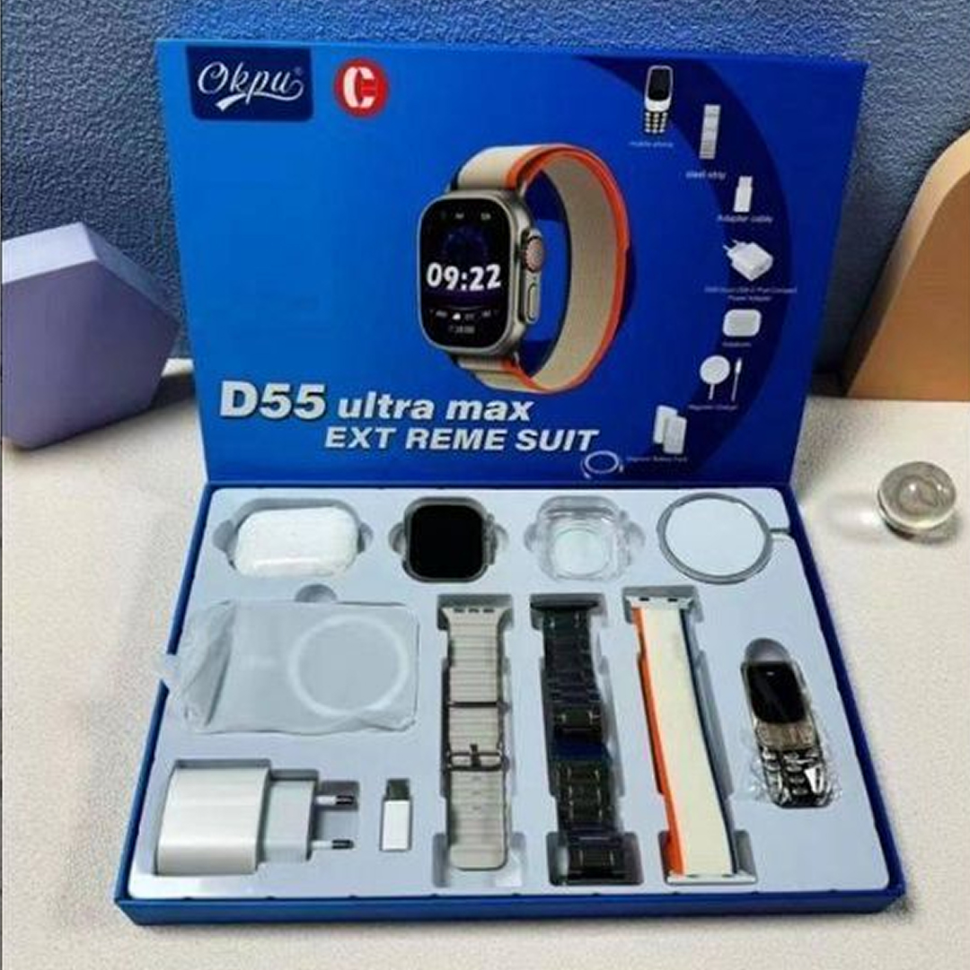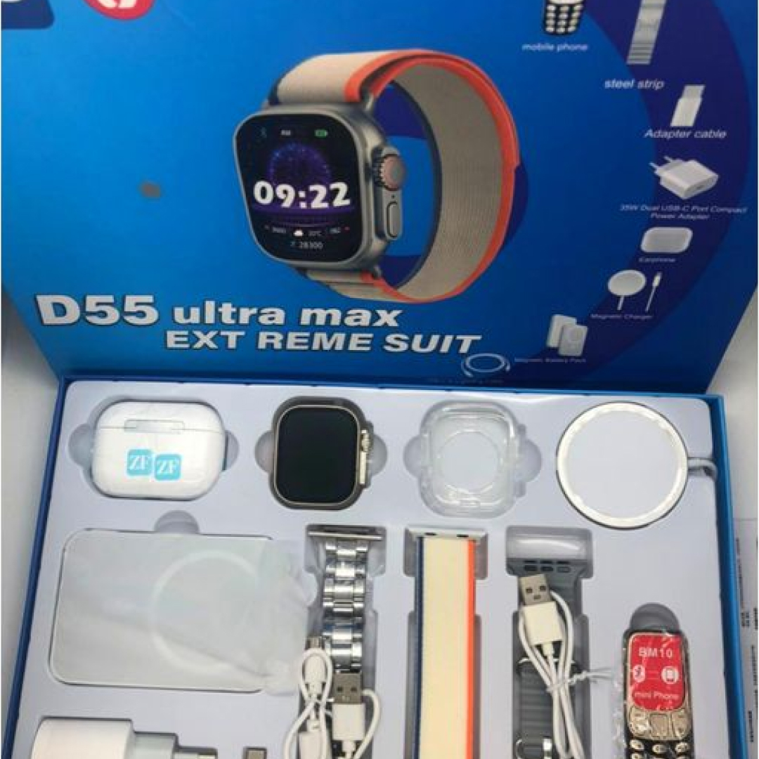 D55 Ultra Max smartwatch extreme suit, which includes several accessories.