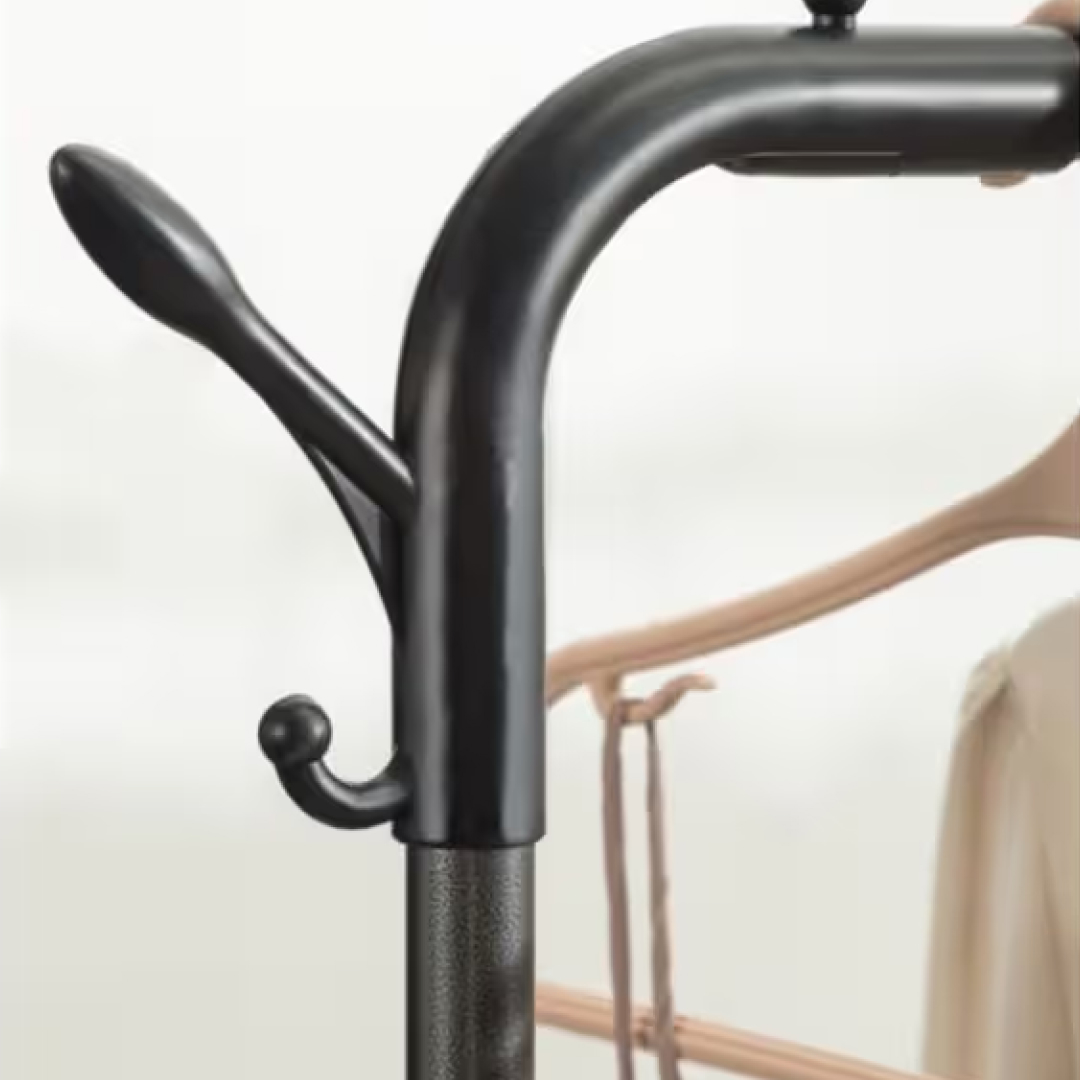 This practical and fashionable double rail pole coat rack is an amazing choice for clothes storage, helping you well organize your clothes, shoes, hats and bags in your entryway, bedroom, office, etc.