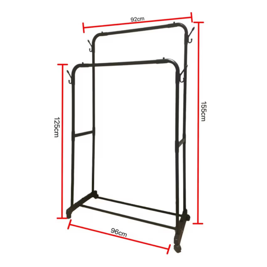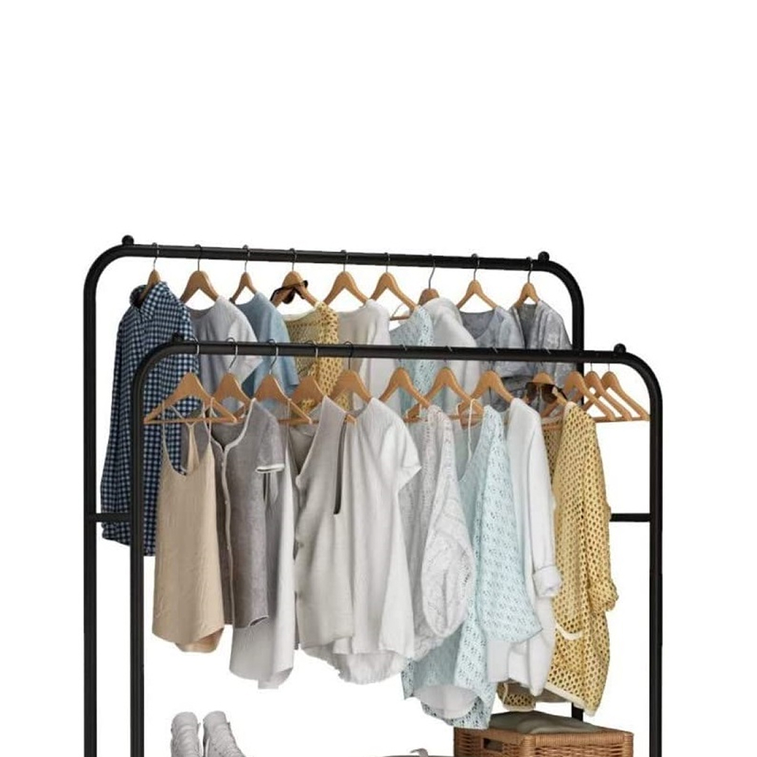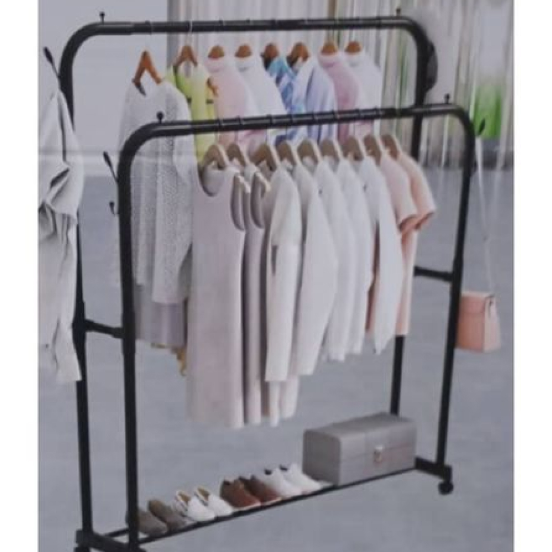 Double Rail Cloth Hanger With Storage Base and Wheels