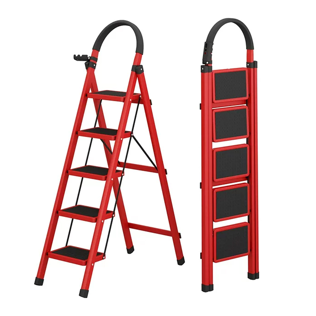 The items shown are MC22 Home Appliances Trading Foldable Step Ladders, which are portable, steel ladders available in multiple sizes. Stainless Steel Ladder, with round padded handle for easy carriage. Good for use indoors.
