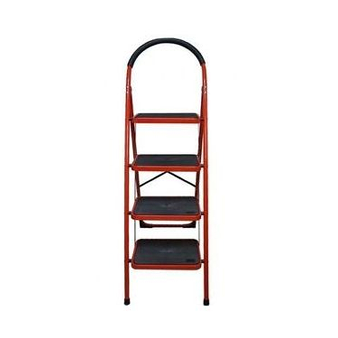Folds flat for easy storage. Anti-slip steps for extra safety. Industrial stainless-steel ladder for home and office use, with features of 4 easy to climb steps, anti-slip steps for extra safety. It is also foldable for space efficiency and easy storage. Lightweight and portable, this high-quality step ladder is ideal for use around the house and office. Feel secure whilst climbing with extra wide steps, non-slip treads, padded handle and strong steel powder coated frame.