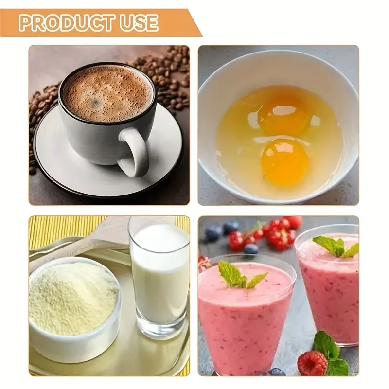 2. When using, put the egg whisk into the liquid to mix, turn on the power to prevent the liquid from splashing, put on the low gear when mixing, select gear as needed, please turn off the power at the end until the egg whisk stops rotating, and then put it away.
