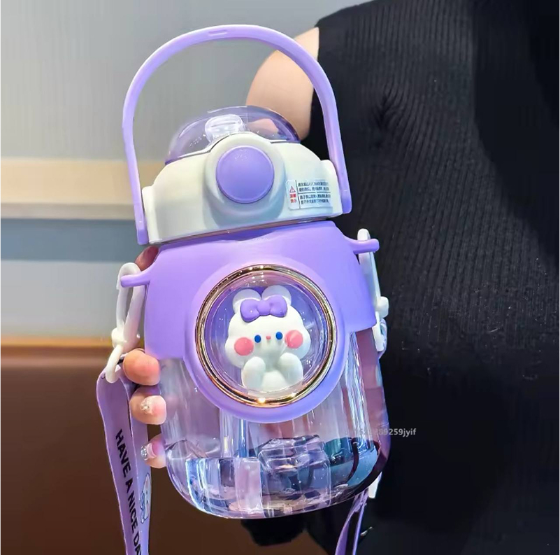 The cute water bottle is made of upgraded plastic inside and outside, BPA-free food grade material, non-toxic, odorless, Safer and more insulated than plastic water bottles, cute water bottles is equipped with an adjustable shoulder strap, easy to carry.