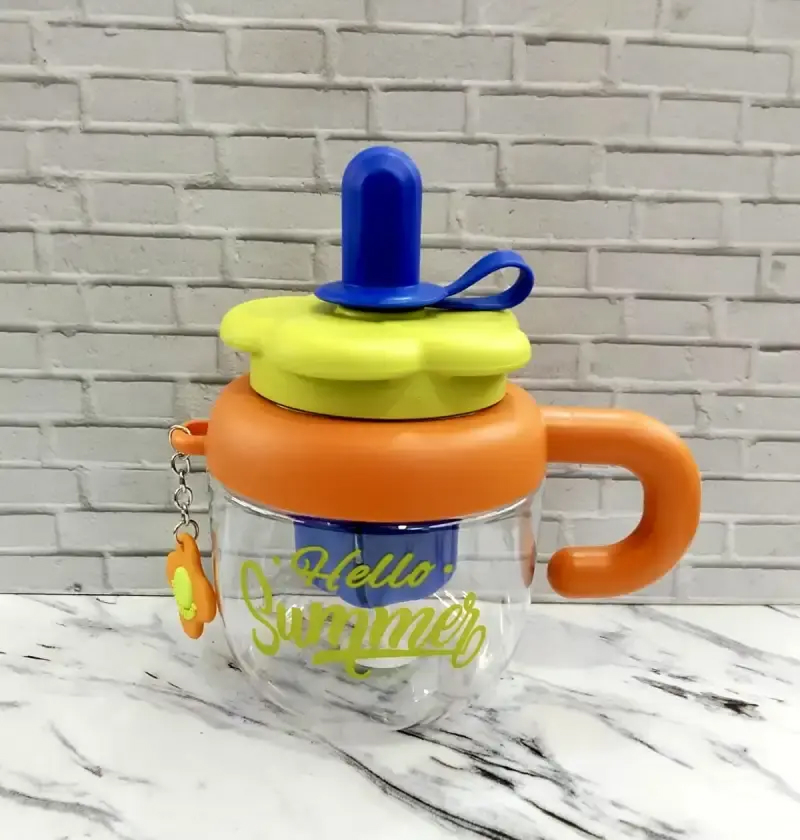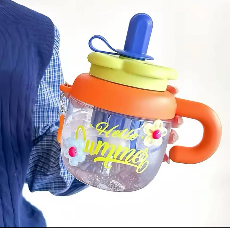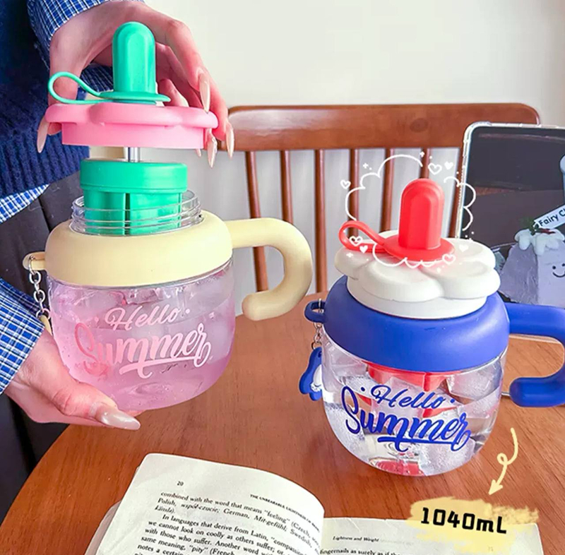 HELLO SUMMER, ZD3575 1040ml INFUSED WATER TUMBLER WITH STRAW AND HANDLE, FREE BOTTLE HANGER.