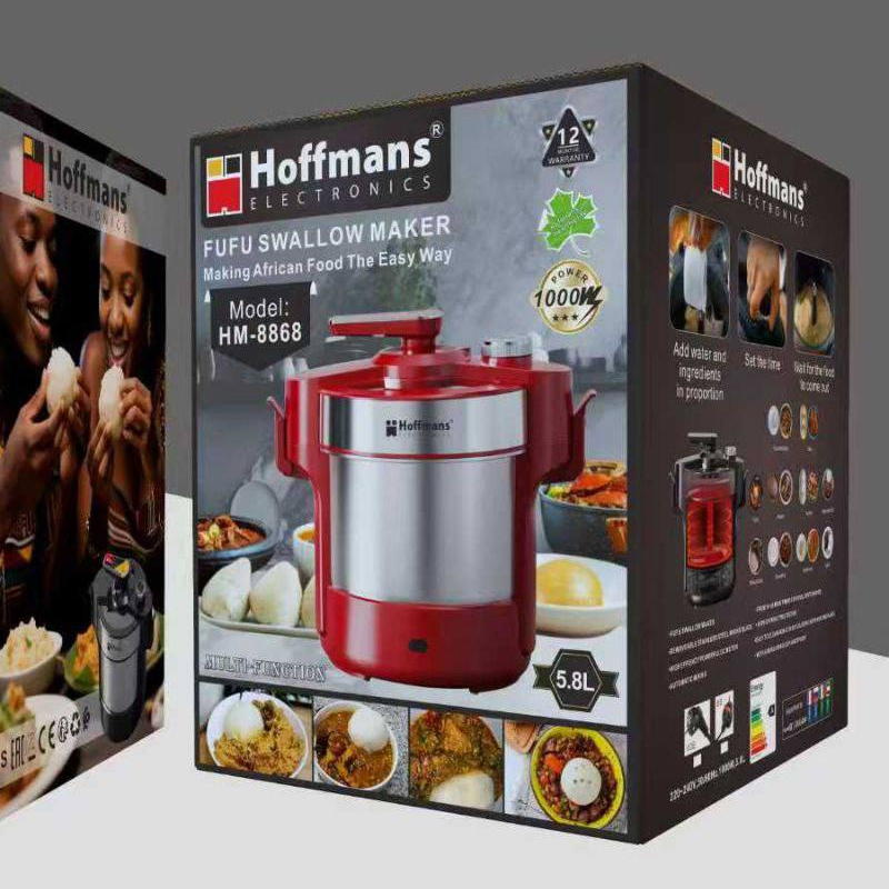 Hoffman 6L Automatic Stainless Steel Food Processor Blender Swallow Maker, Swallow food such as Amala, Fufu, pounded yam, Semolina, Eba, Wheat, Banku, Ugali to mention but a few.