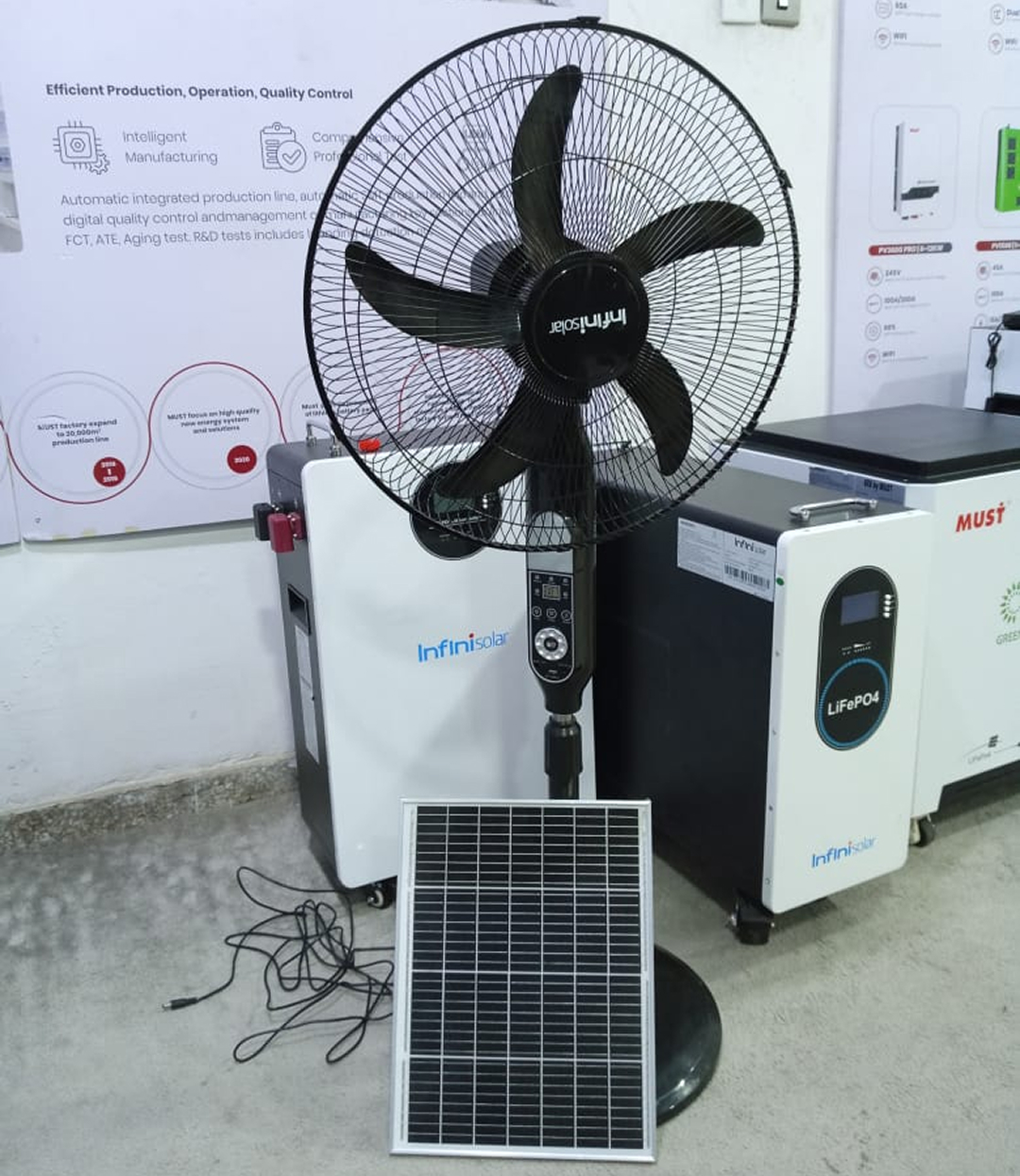Enjoy quiet operation, strong airflow, and flexible charging options — whether from electricity or solar power.