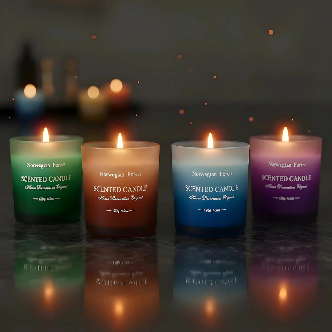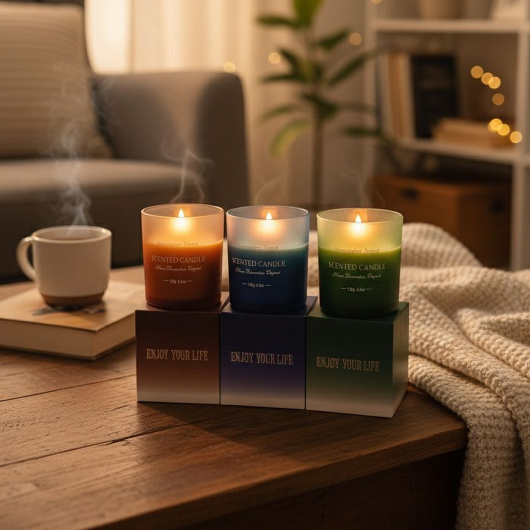 Enhance your space with the LED Glow Soy Scented Candle, elegantly housed in a serene blue glass jar and featuring built-in LED lights.