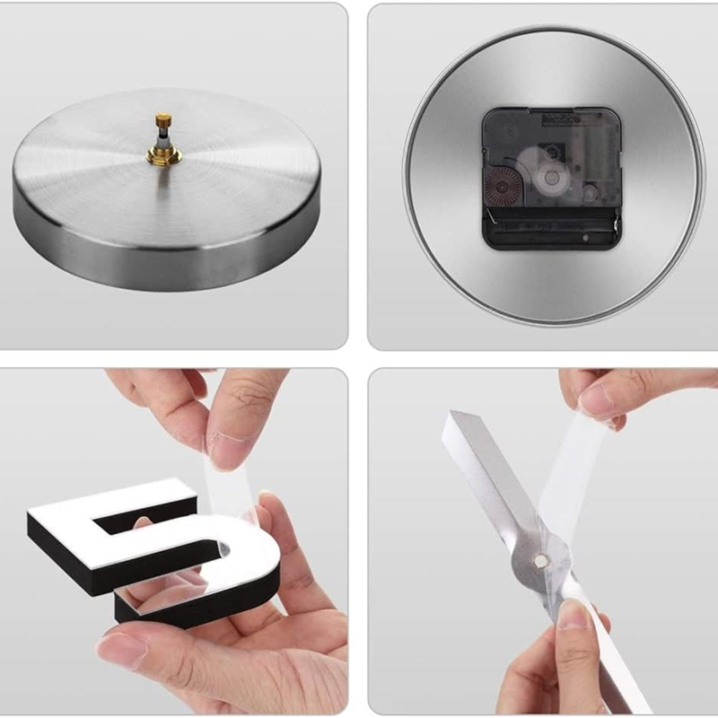 Our clock is a silent clock, but there will be a slight ticking on a very quiet night. Easy to install, the package includes self-adhesive paper and a ruler for easy installation.