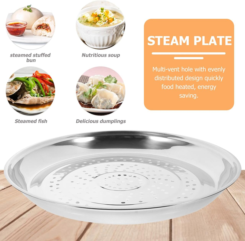 Designed for steaming dumplings, lobster, fish, crab, and other seafoods, this stainless-steel steaming dish ensuring food retains its natural flavor and nutrients.