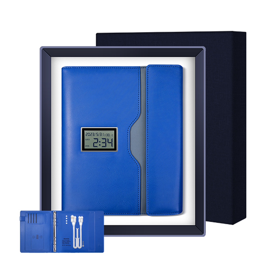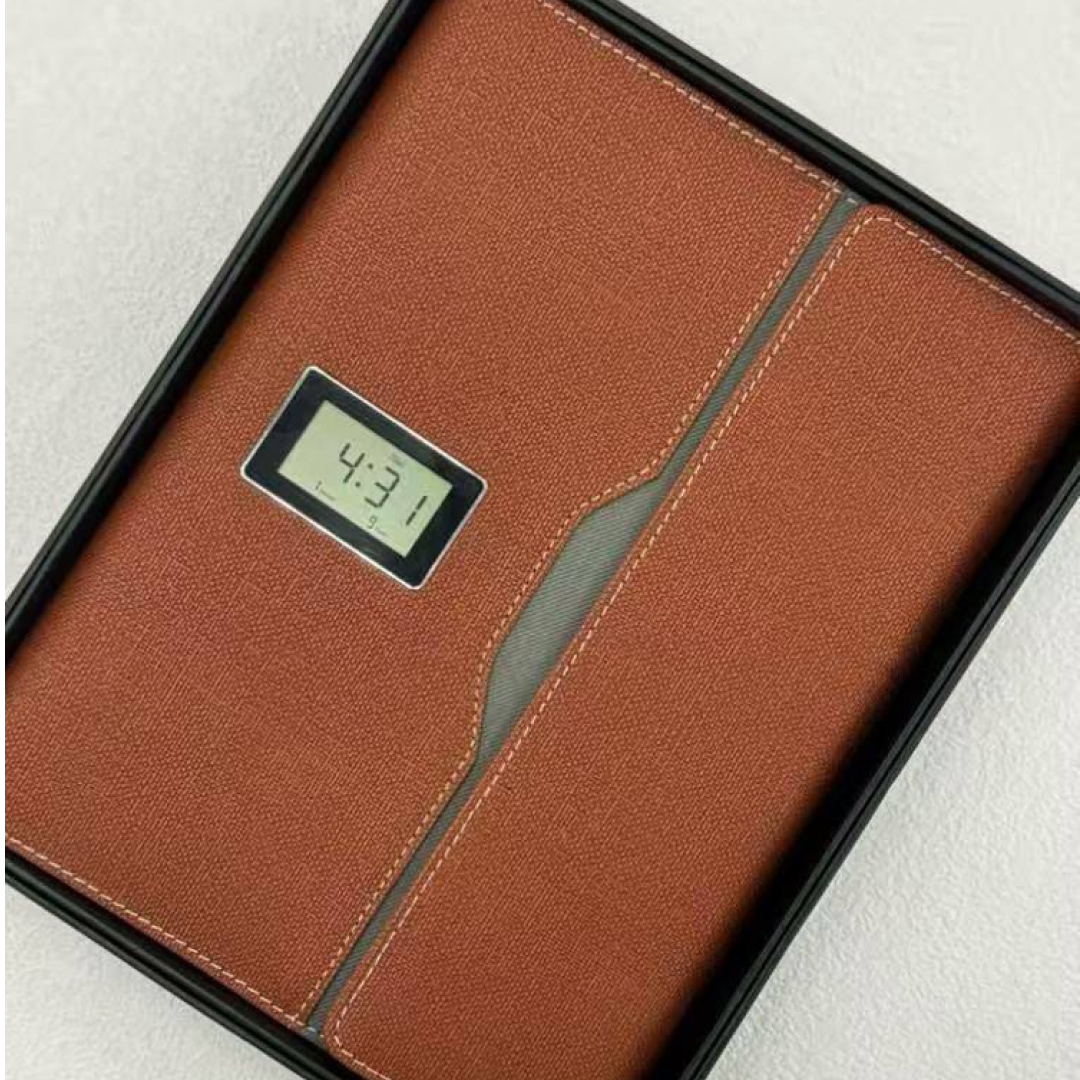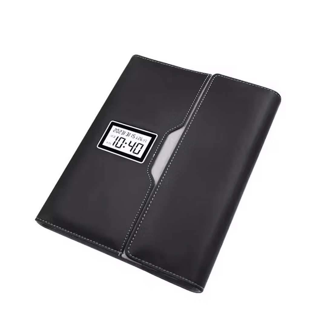 Wireless Charging Business Folder Notebook with Phone Stand and Clock, A5 Planner Organizer for Office Men.